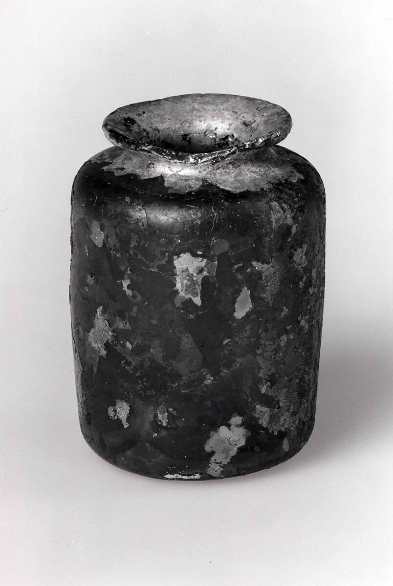 - Dimensions: H. 6.8 cm; diam. of rim 3.9 cm; diam. of shoulder 5 cm