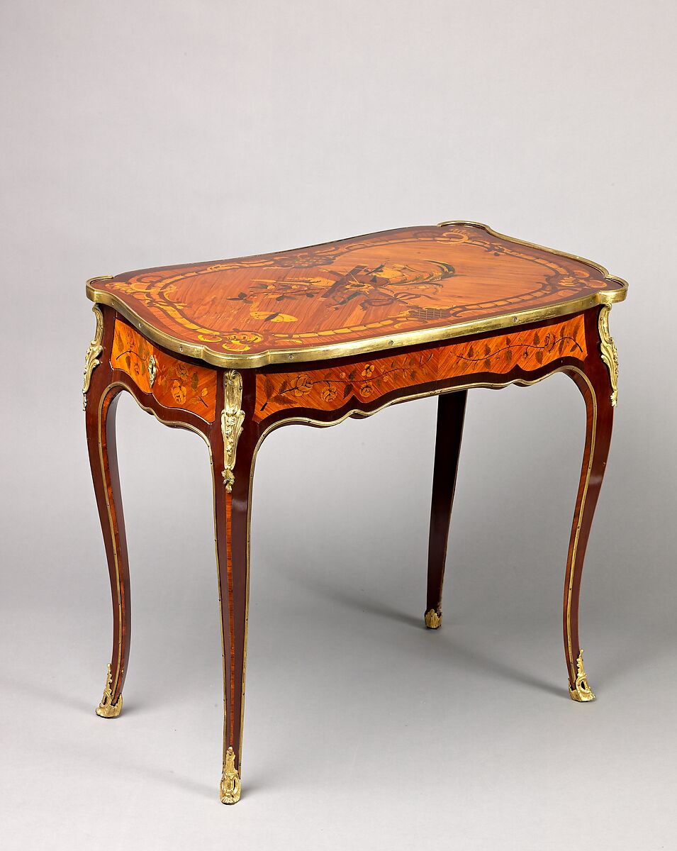 - Medium: Oak veneered with tulipwood, mahogany, and rosewood, with marquetry of partly shaded satinwood, partly stained, shaded, and engraved maple and barberry, and ebonized wood; gilt-bronze mounts.