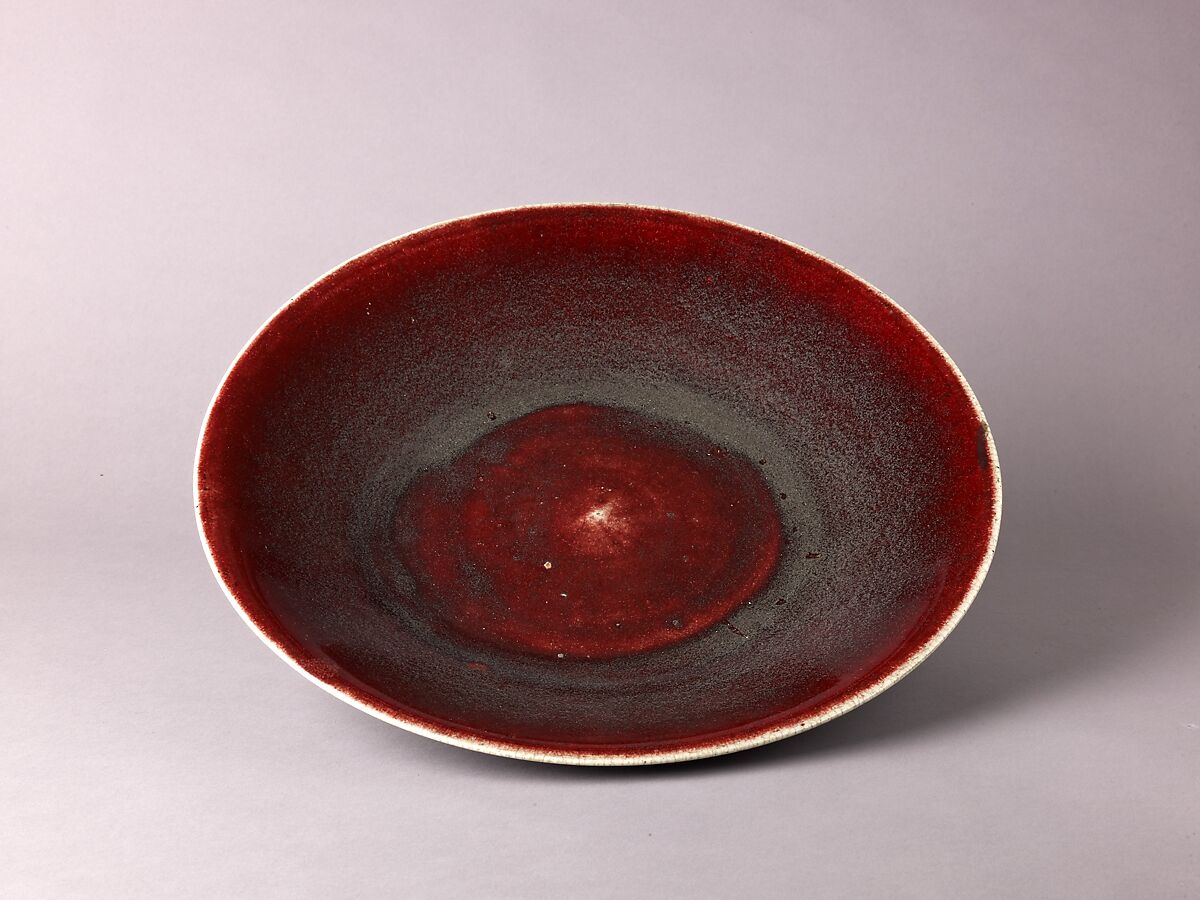 - Medium: Porcelain with dark red glaze.