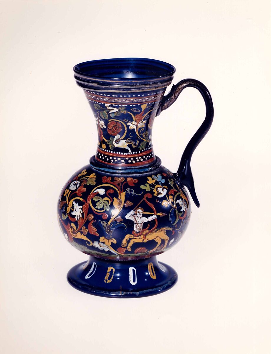 - Medium: Transparent dark blue nonlead glass. Blown, enameled, gilt.