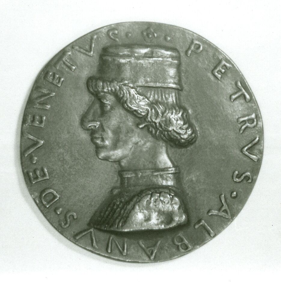 Sperandio di Bartolommeo Savelli was an Italian medallist, architect, sculptor, painter, bronze and cannon caster. He was the son of a Roman goldsmith, Bartolommeo di Sperandio Savelli. Sperandio is first mentioned as a goldsmith at Ferrara in 1445 and again in 1447. He appears to have returned to Mantua at some point and to have been employed by Borso d'Este, Marquess of Ferrara, by the early 1460s. As indicated by the inscription, the medal portrays one Pietro Albano, who could possibly be identified as the famous thirteenth-century Italian physician, philosopher, and astrologer, whose activity in Padua marked the rise of city as a center for medical studies. The reverse shows a pensive Mercury sitting on a bale.The piece was possibly cast after a lead original in the seventeenth or eighteenth century.
