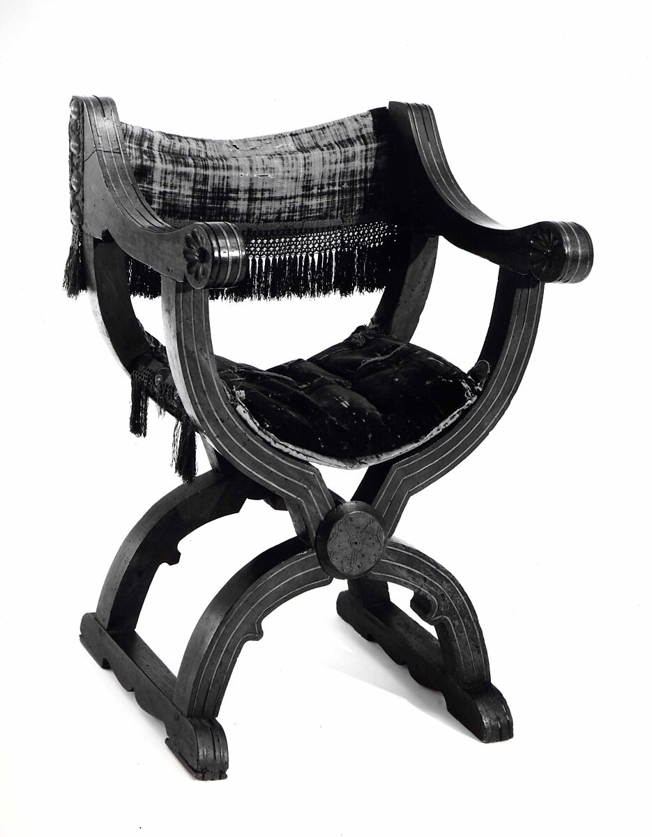 - Medium: Walnut, carved; embroidery, silk velvet, metal.