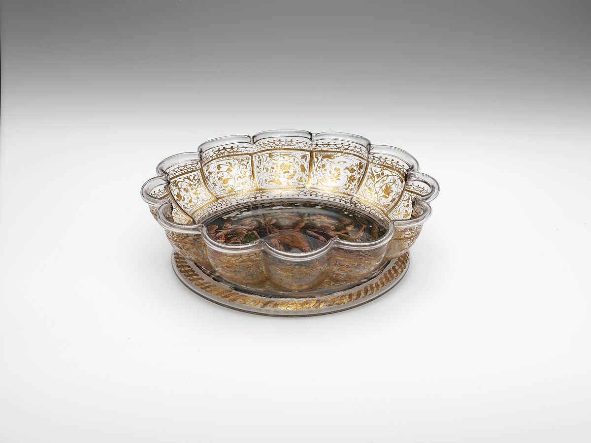 - Medium: Colorless (gray) nonlead glass. Blown, reverse painted, gilt (unfired).