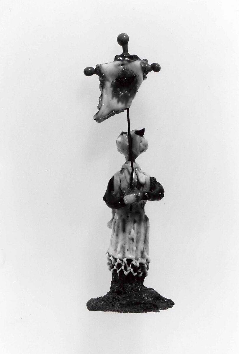 - Medium: Opaque white, black, pink, yellow, blue and green glass; copper and iron wire. Lampworked.