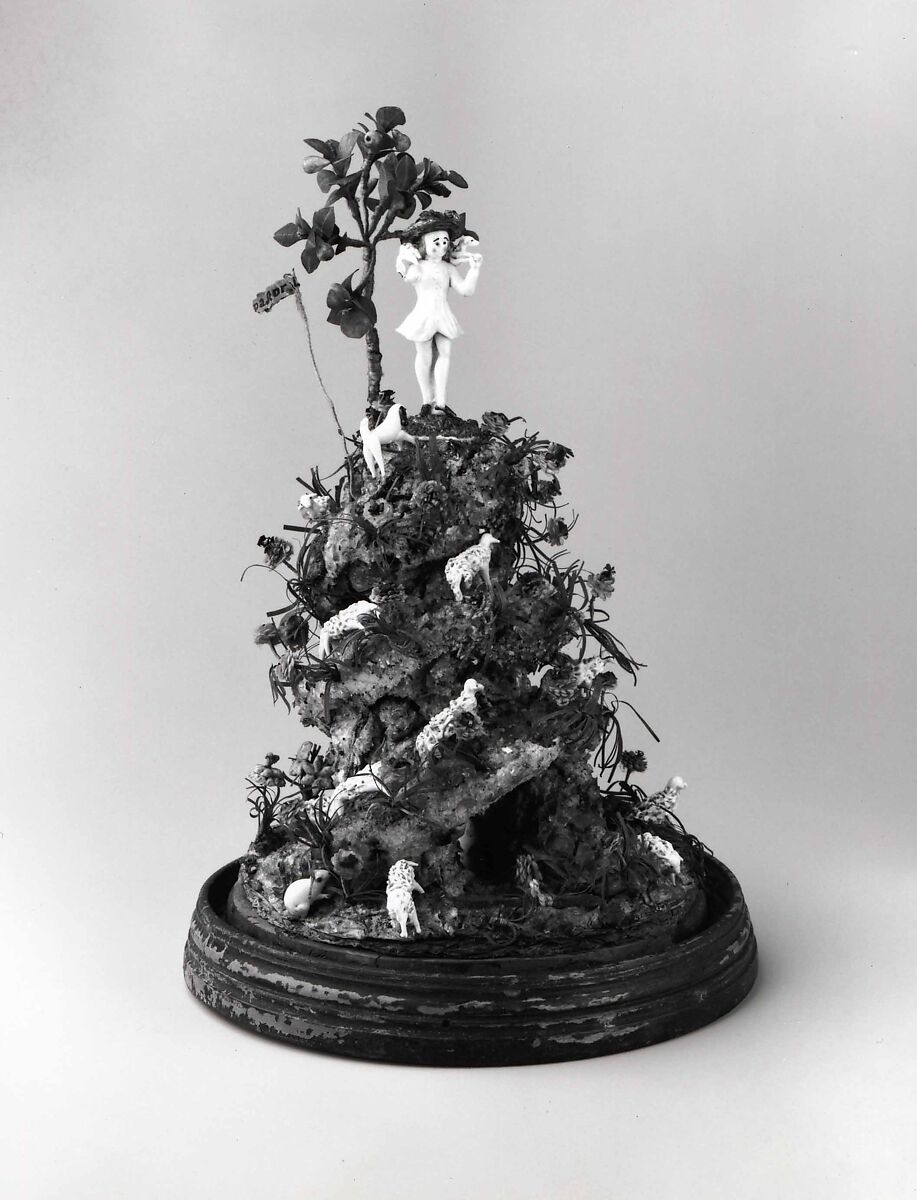 - Medium: Figures of lampworked glass (opaque white, pink, black, blue, green, waxlike colorless, and transparent amethyst), papier-mâché, wood, mirror plate, paper, composition material, paint, metal sequins, metal wire. Assembled.