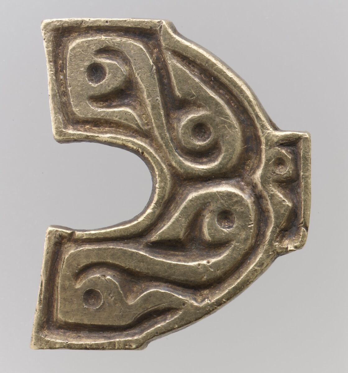 Tribute payments from the Byzantine Empire and war booty provided the Avars with enormous amounts of gold and silver. Avar goldsmiths created work of exceptionally high quality and were counted among the Avars’ ruling class. This ensemble of objects, all found together in Vrap, in present-day Albania, would seem to attest to the wealth of the Avars. Why this varied group was brought together remains a mystery. Some scholars have suggested that these objects were part of a treasure belonging to an Avar chief; others have speculated that they were the materials of an Avar artist. Others question whether an Avar metalsmith made them at all and assert these objects to be the products of a provincial Byzantine artist.