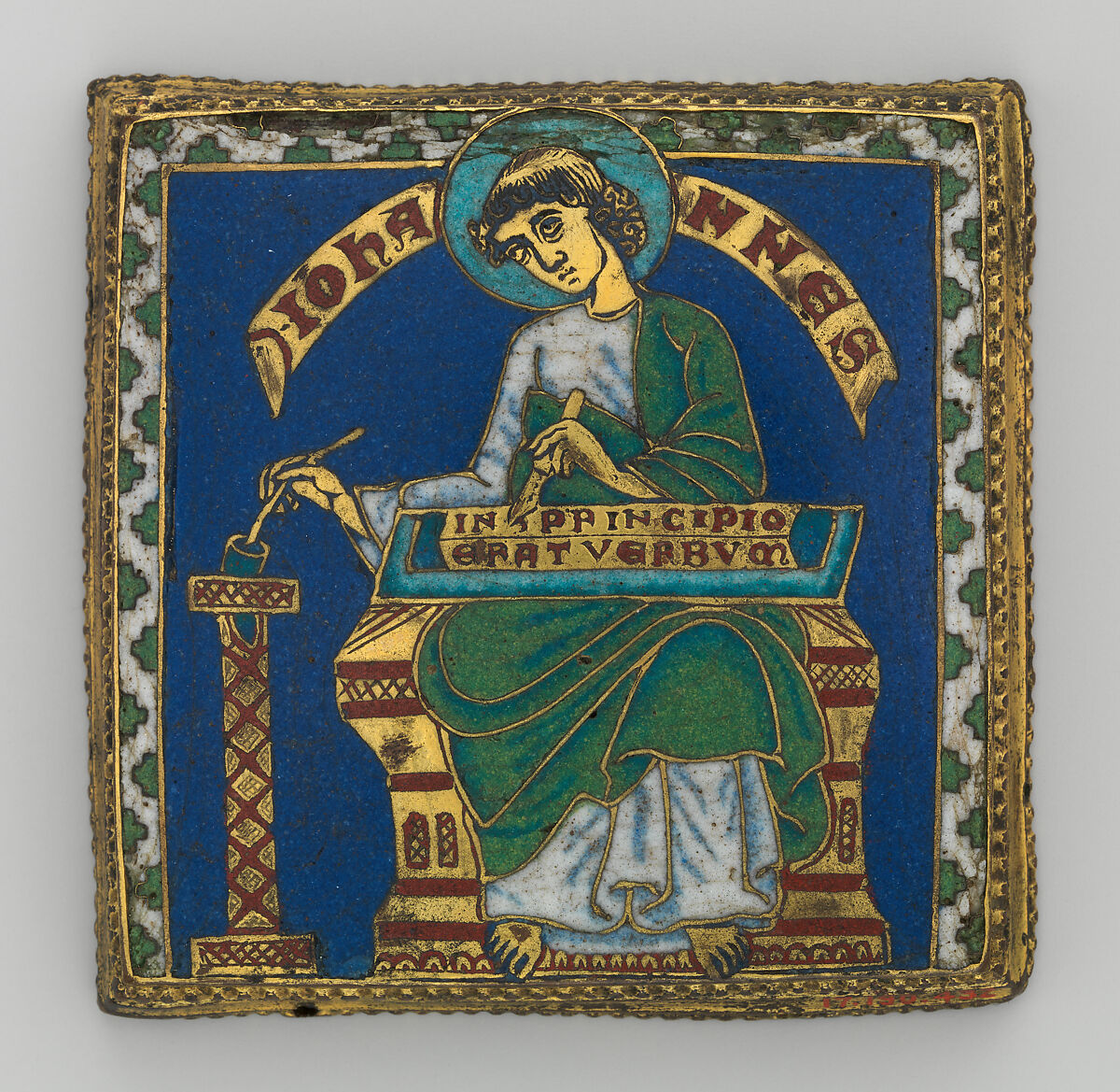 The Latin inscriptions name John and the opening words of his Gospel: “In the beginning was the Word.”