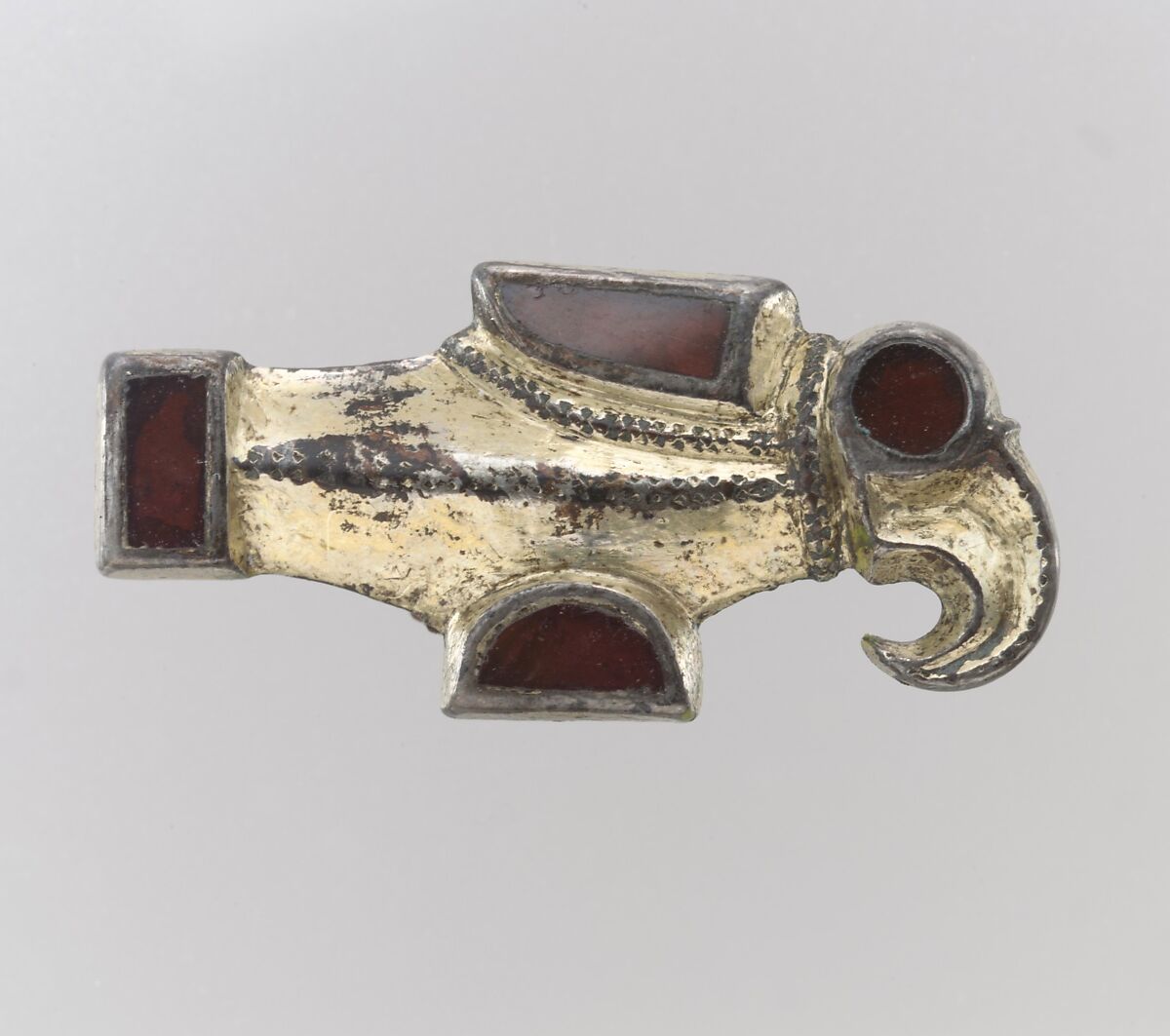 - Medium: Silver-gilt, garnets, foil backings for garnets; iron spring