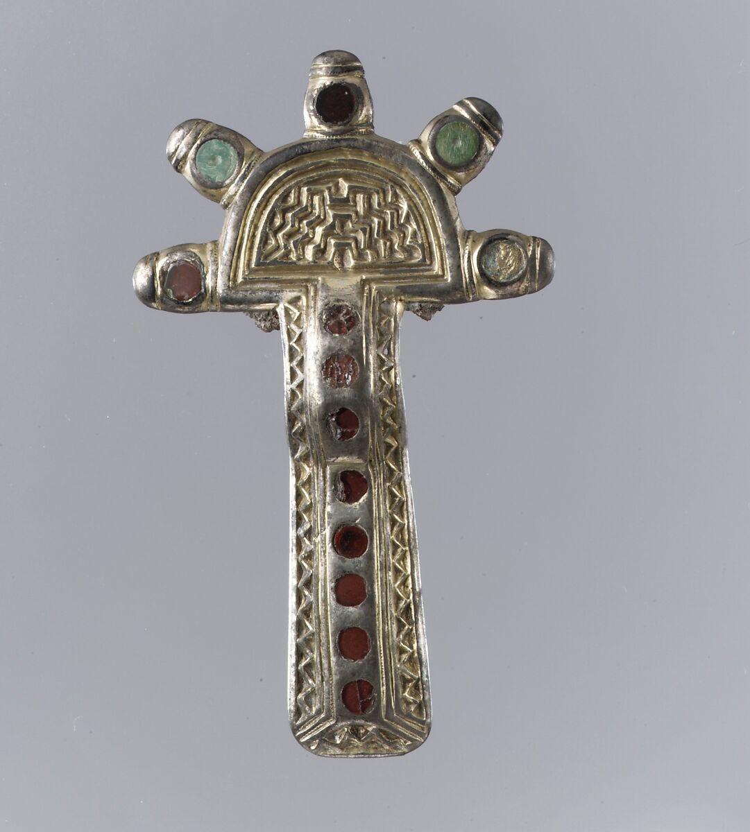 The bow brooch was a component of many Germanic women's dress. In Frankish territory brooches were generally worn in pairs, as decorative elements on a strap hanging from the belt. The bow refers to the bend or curve that links two terminals.