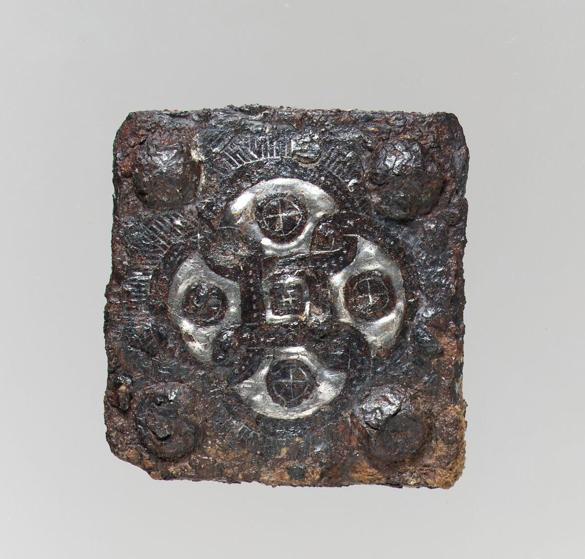 - Medium: Iron with silver overlay/ inlay; iron rivets with silver inlay in head