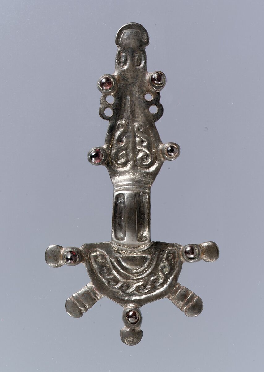 - Medium: Silver-gilt, garnet cabochons