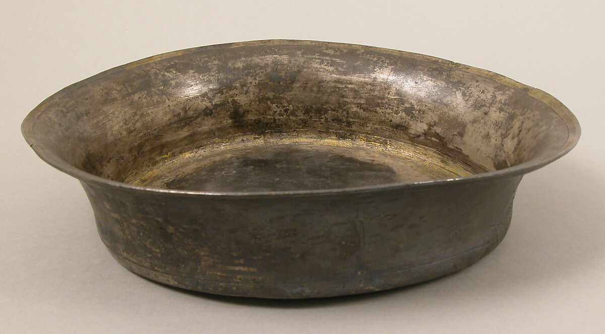 of the Divine Liturgy (Eucharist) in Byzantium. The specially stamped and sanctified large bread for the communion service was contained by the rim of the paten. The exterior of this paten is decorated with a monogram that has yet to be identified.