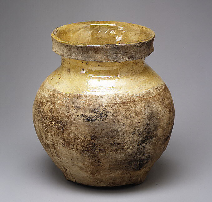 The feet of this pot were, almost whimsically, pressed into the clay with a thumb. The extended glazed lip suggests that the vessel was intended to be stoppered.