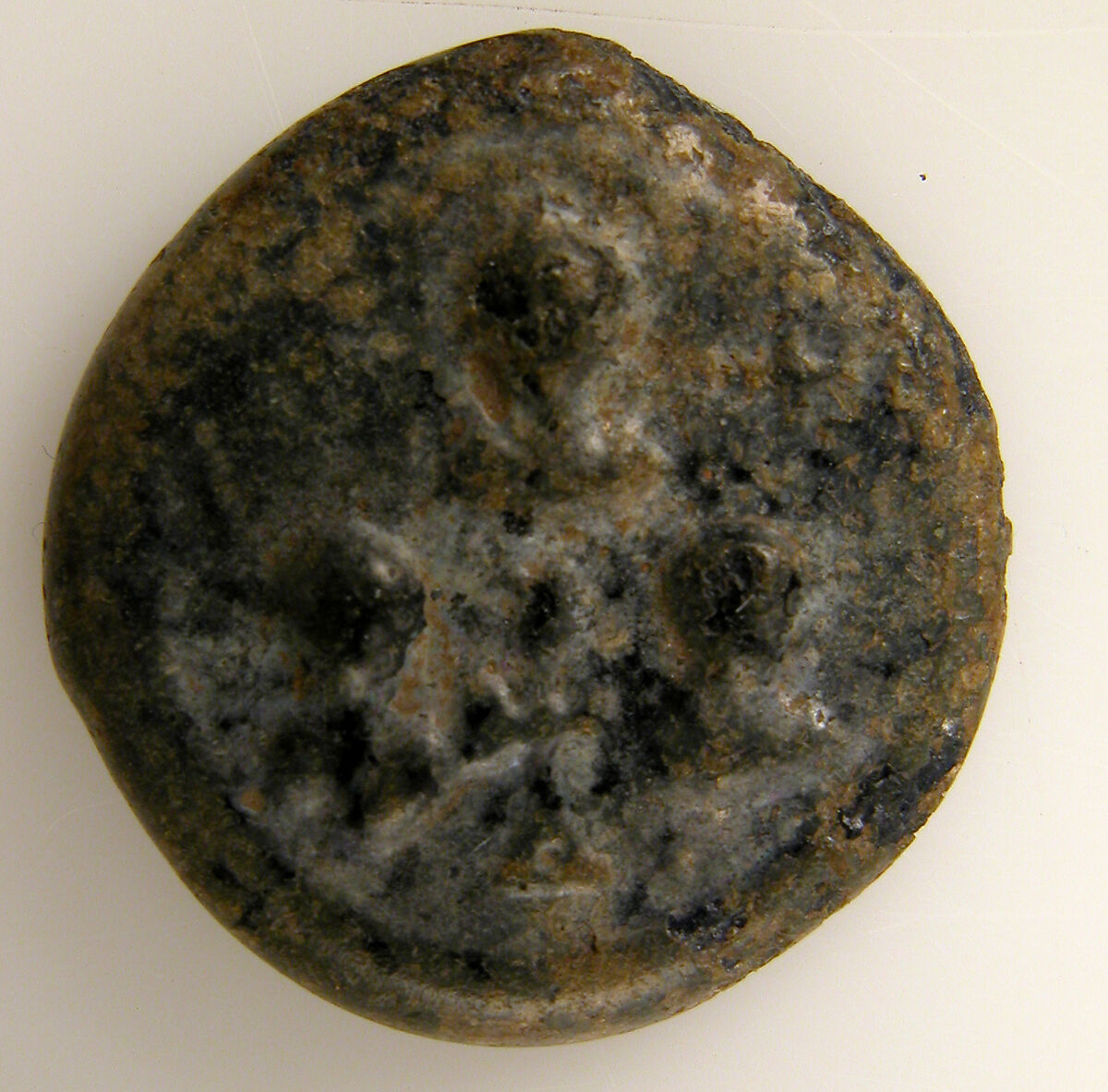 Glass weights conformed to the standards for weights. Here either two eparchs, officials who regulated trade, weights, and measures, or two emperors are shown blessed by Christ.