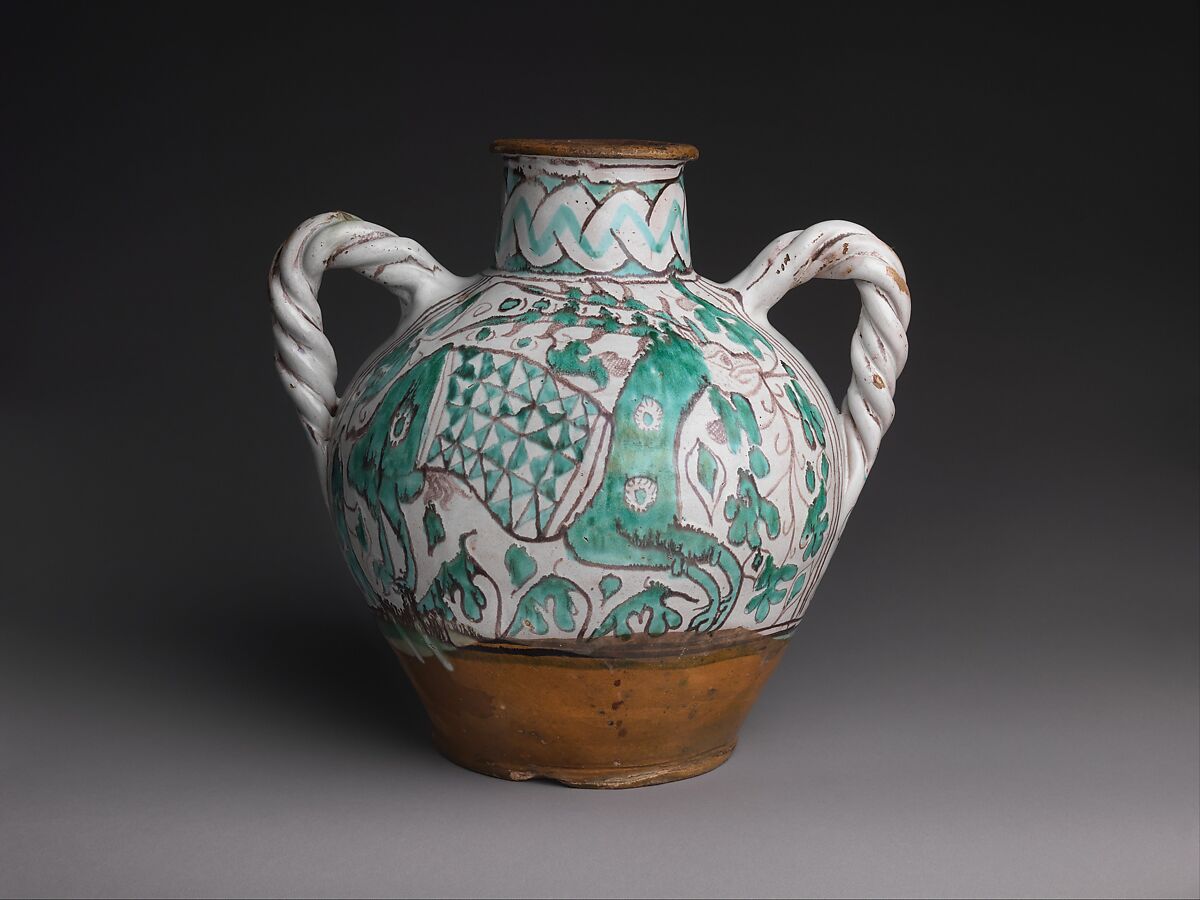 Combining Eastern and Tuscan decorative motifs, this rare type of early Tuscan maiolica may have been used in a medieval pharmacy