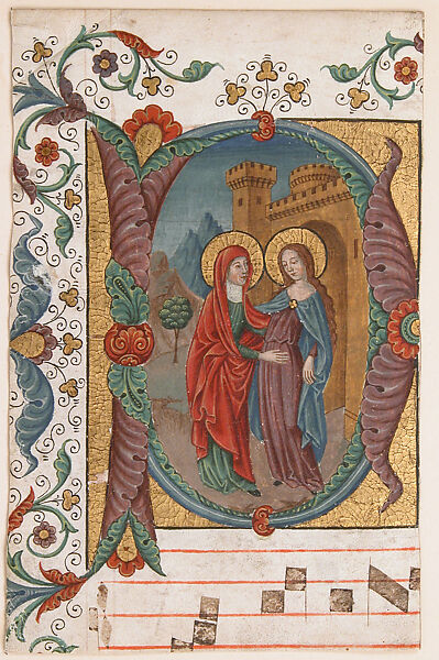 - Title: Manuscript Illumination with the Visitation in an Initial D, from a Choir Book