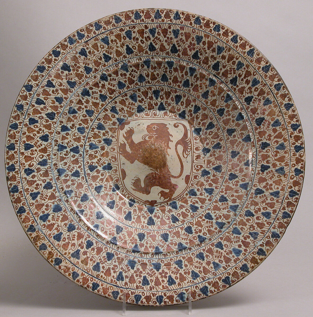 Knowledge of the technique for creating lusterware made its way to the Iberian Peninsula by the twelfth century, when most of the region was still under Islamic rule. By the 1400s, the Iberian center of lusterware production was in Manises, near the city of Valencia. Previously a Muslim taifa, or principality, the Kingdom of Valencia was conquered in the thirteenth century by James I for the Crown of Aragon, and it was here that Christians and Muslim potters worked, sometimes together, for a diverse clientele with a voracious appetite for high quality lustered wares.