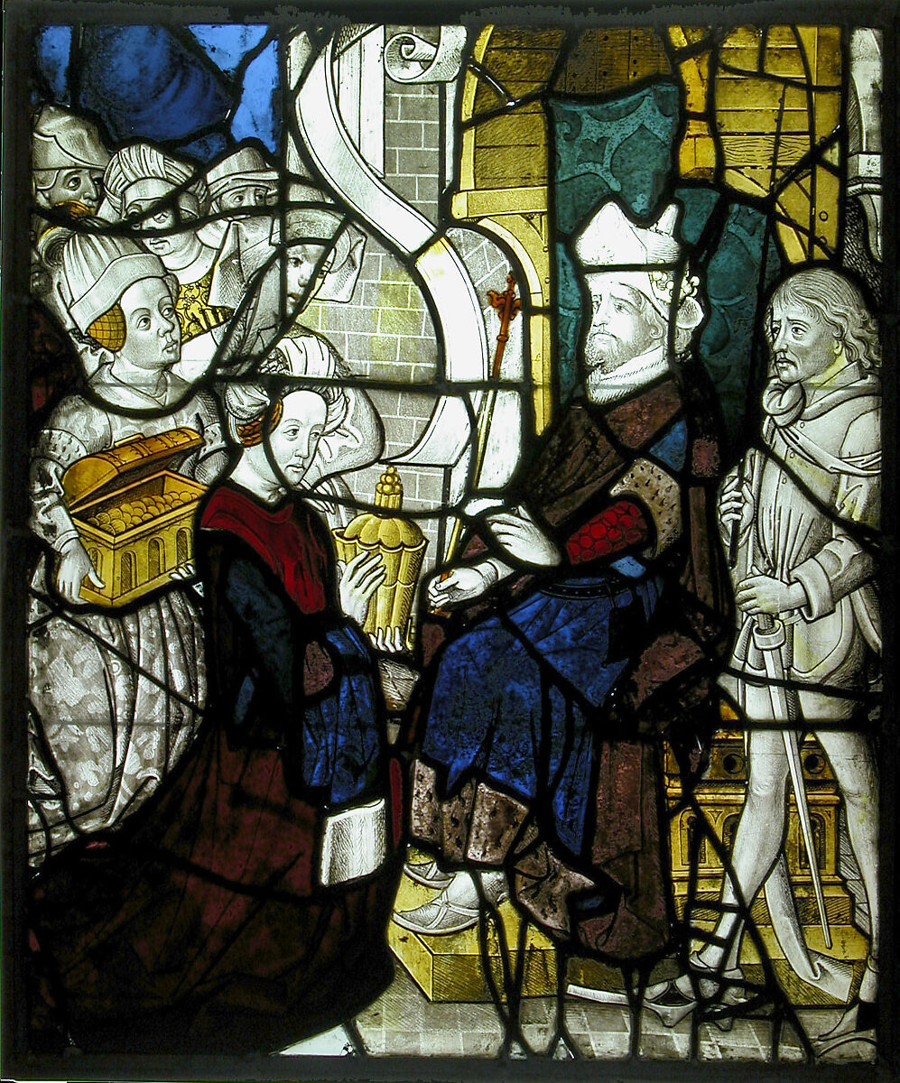 - Title: Glass Panel with Solomon Receiving The Queen of Sheba