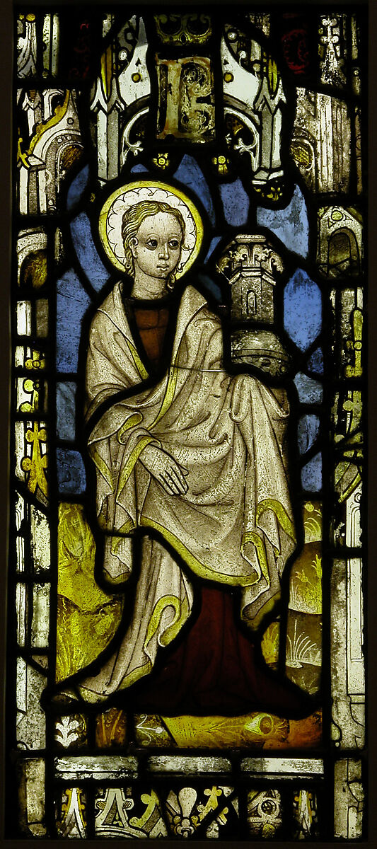 - Medium: Pot-metal, white glass, vitreous paint, silver stain