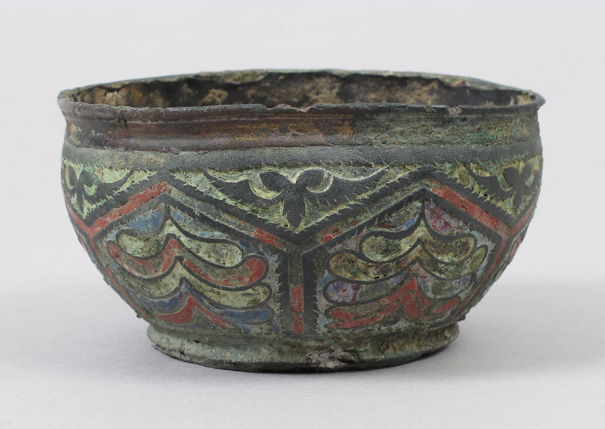 - Medium: Champlevé enamel, bronze, silver liner and bottom