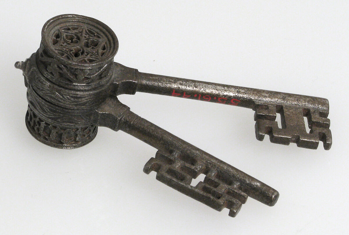 The decoration of Gothic iron locks and keys was often elaborate and of the highest standard of workmanship. The motifs were frequently drawn from Gothic architecture, reproducing on a miniature scale complicated tracery patterns and even tiny statuettes. A number of these tiny locks were compound, with some of the mechanisms concealed from view, and required two or even three keys used in sequence to open them. It has been suggested that the greatly expanded use of locks on doors, or coffrets and other types of storage chests was a result of the increasing urbanization of life and the new emphasis on material wealth and private ownership which developed in the late Middle Ages.