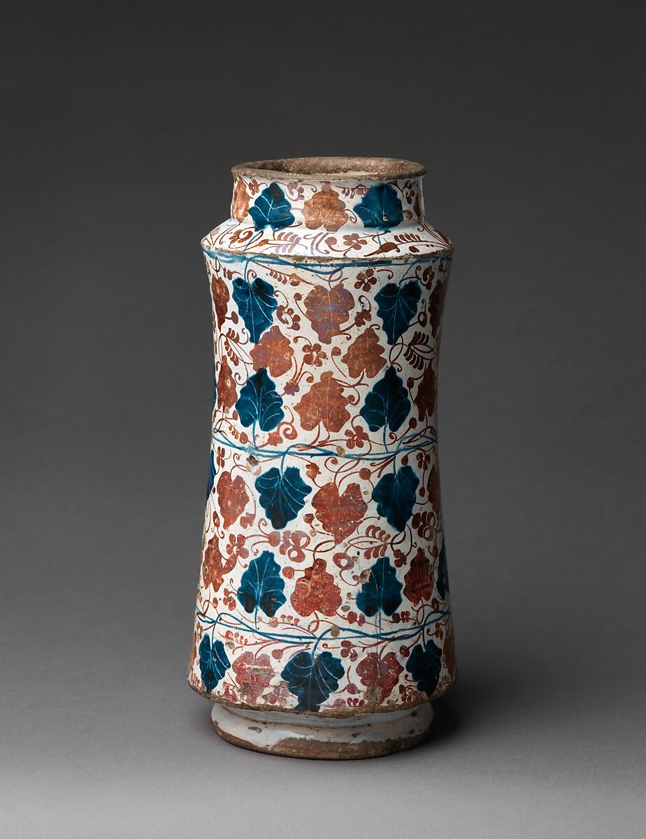 Knowledge of the technique for creating lusterware made its way to the Iberian Peninsula by the twelfth century, when most of the region was still under Islamic rule. By the 1400s, the Iberian center of lusterware production was in Manises, near the city of Valencia. Previously a Muslim taifa, or principality, the Kingdom of Valencia was conquered in the thirteenth century by James I for the Crown of Aragon, and it was here that Christians and Muslim potters worked, sometimes together, for a diverse clientele with a voracious appetite for high quality lustered wares.