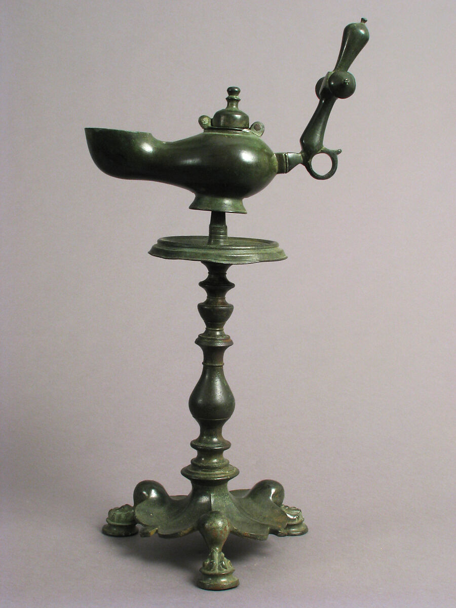 Standing lamps decorated with crosses and supported on footed bases were common in the early Byzantine world. Bishop Theodoret of Cyrrhus in Syria (d. ca. 466) described Saint Symeon Stylites, who lived atop a column, as “this dazzling lamp, [who] as if placed on a lampstand, has sent out rays in all directions likes the sun.”