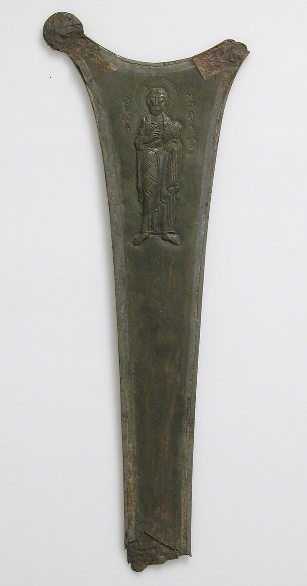 A depiction of Saint John the Theologian decorates the face of the surviving upper arm of a large cross. An elegant, small cross is inscribed in a medallion on the reverse. Such crosses would have been carried in processions or installed on an altar, possibly one dedicated to the saint.
