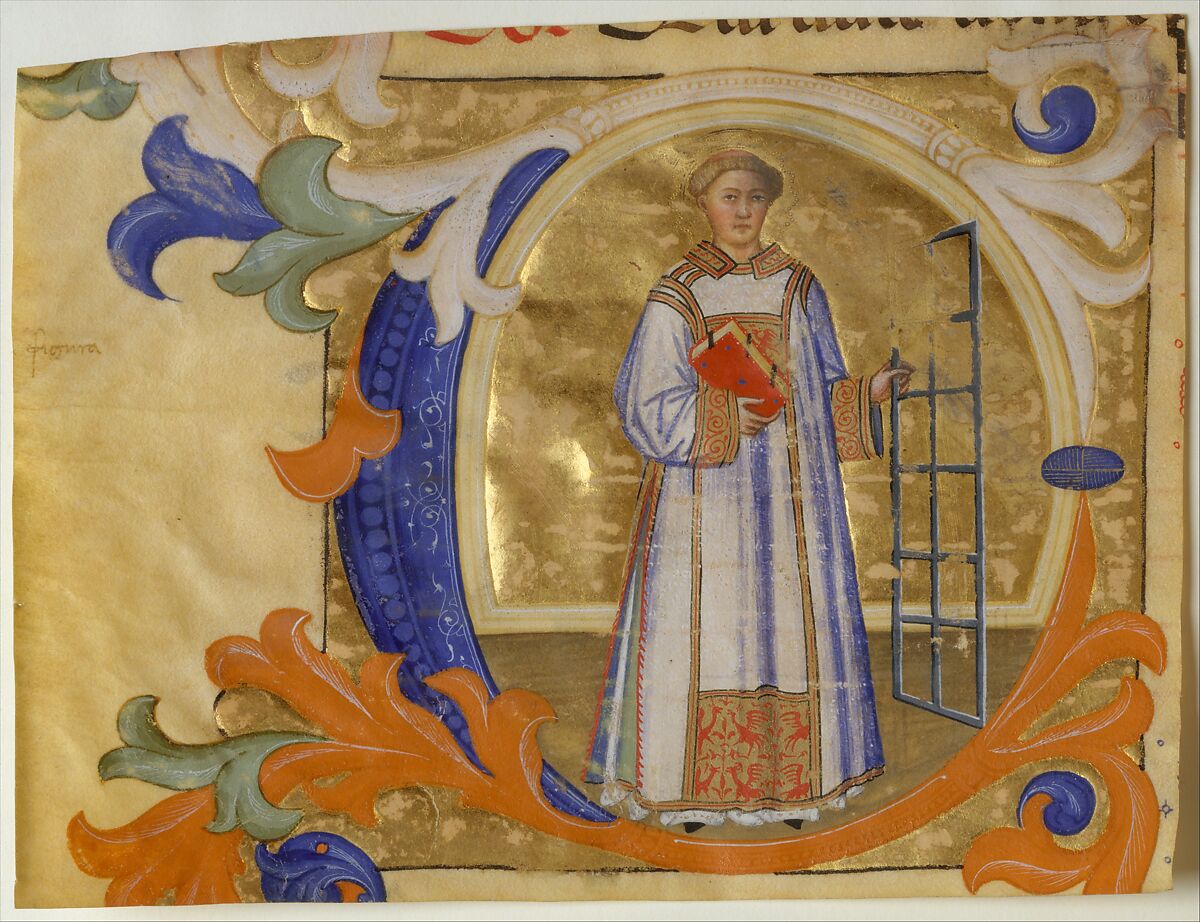 - Title: Manuscript Illumination with Saint Lawrence in an Initial C, from a Gradual