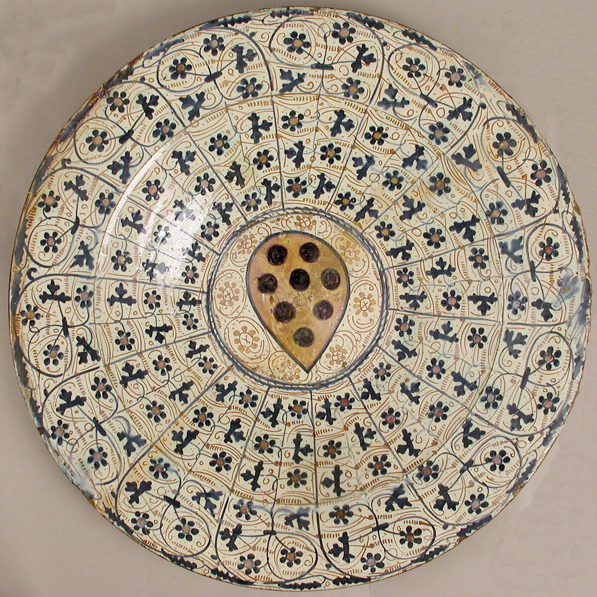 Knowledge of the technique for creating lusterware made its way to the Iberian Peninsula by the twelfth century, when most of the region was still under Islamic rule. By the 1400s, the Iberian center of lusterware production was in Manises, near the city of Valencia. Previously a Muslim taifa, or principality, the Kingdom of Valencia was conquered in the thirteenth century by James I for the Crown of Aragon, and it was here that Christians and Muslim potters worked, sometimes together, for a diverse clientele with a voracious appetite for high quality lustered wares.