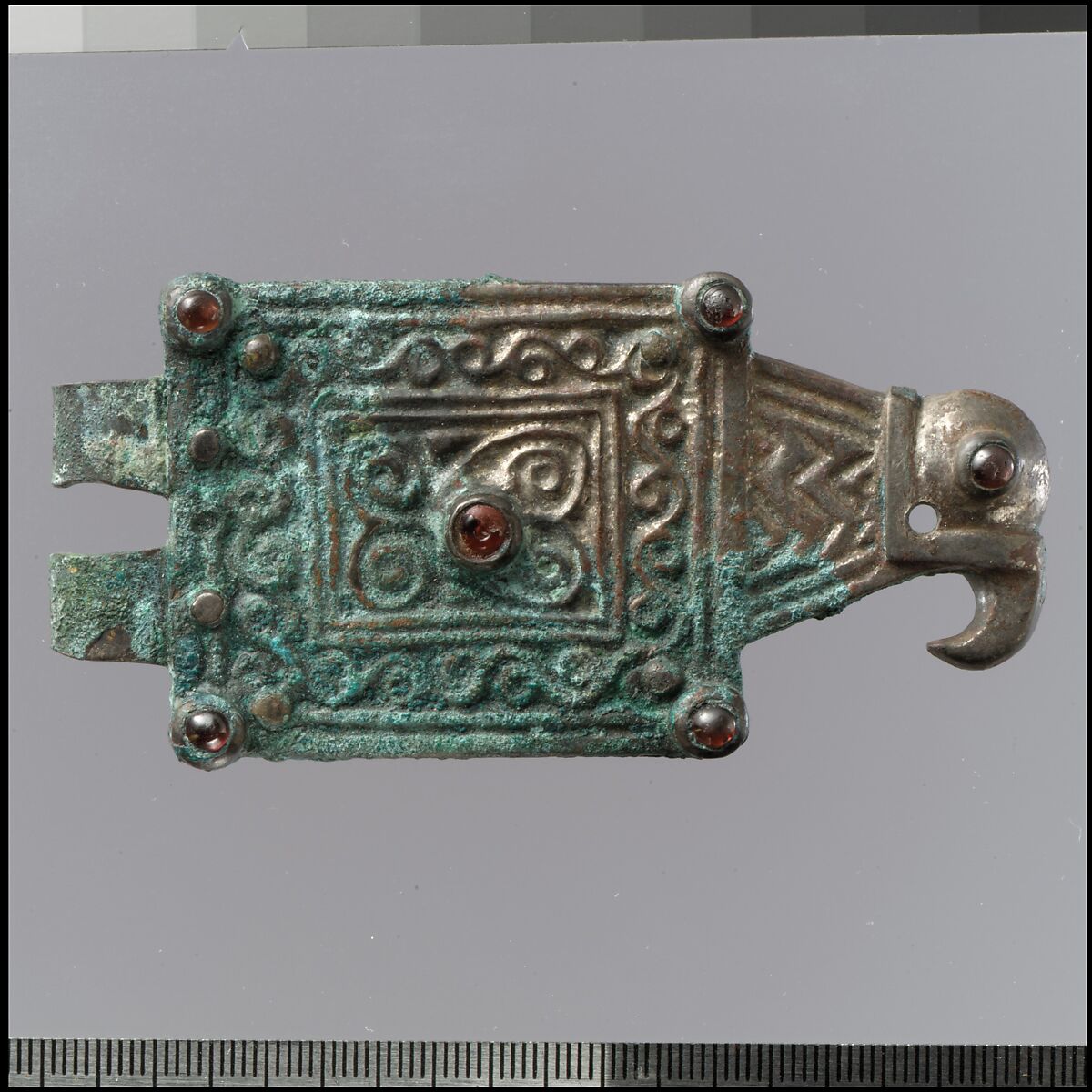 - Medium: Silver with garnets, gilt.