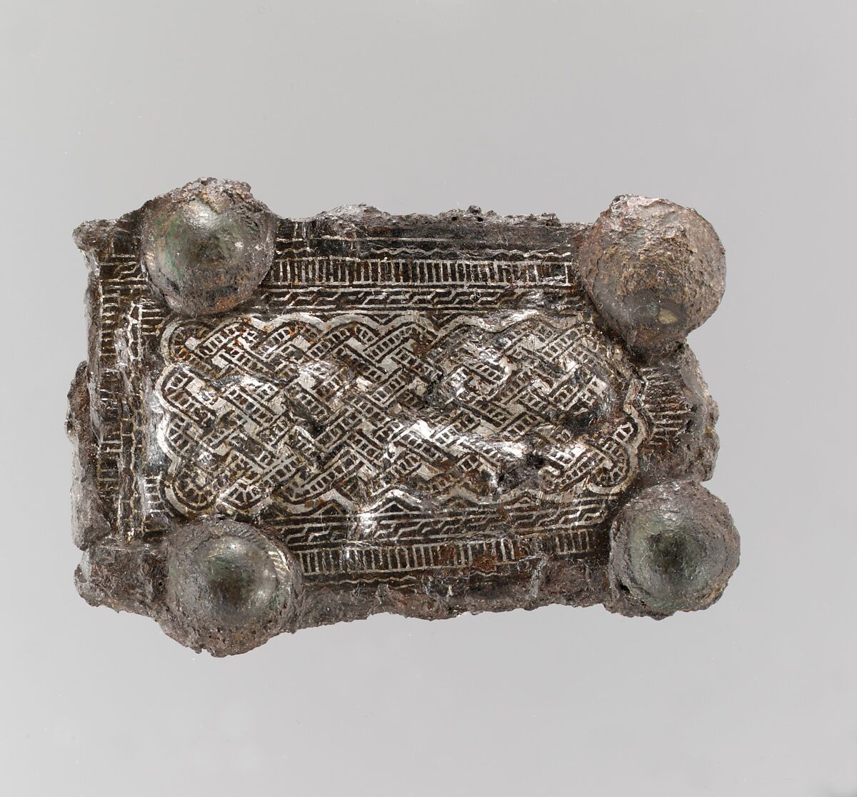 - Medium: Iron, silver inlay and copper alloy rivets with incised borders
