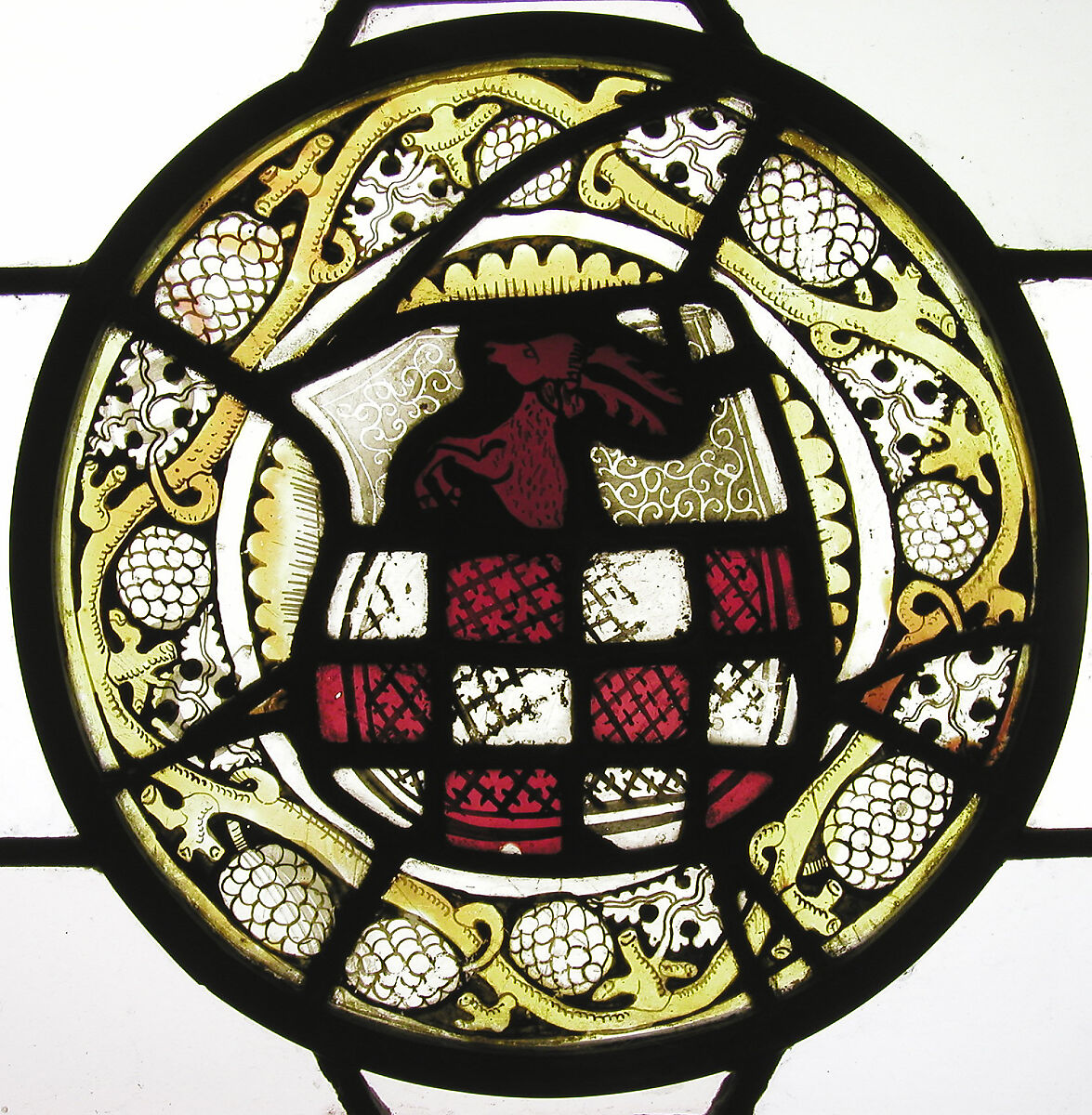 This roundel probably represents the members of a confraternity or honorary society. In the nineteenth century, this glass roundel was in a castle on the Moselle River, the home of Baron von Liebig, a collector of stained glass.