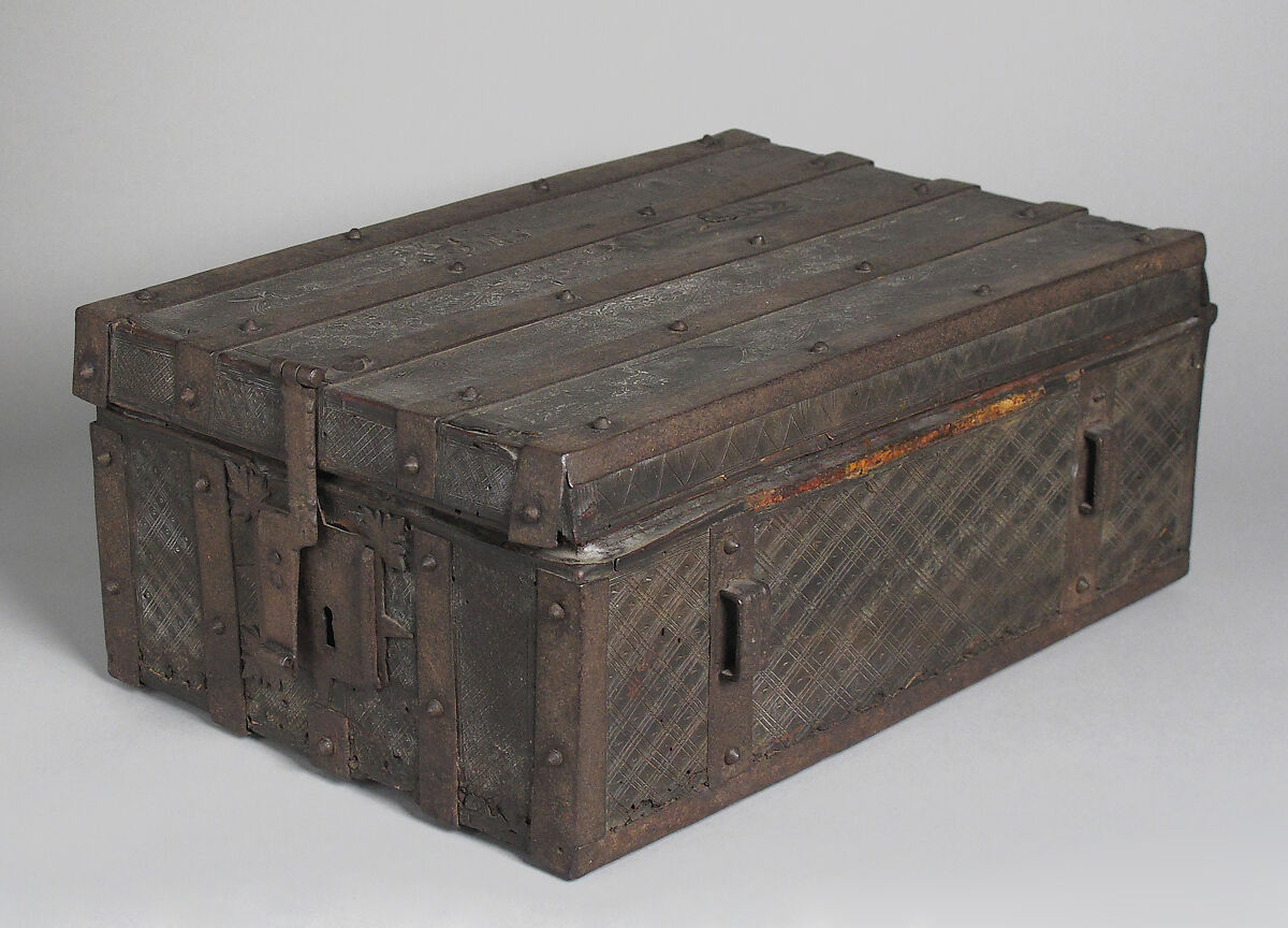 - Medium: wood, covered with leather, bound with iron