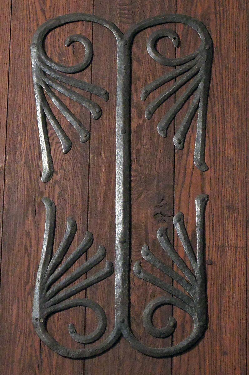 Their utilitarian function notwithstanding, medieval door mounts are often ornately designed, with geometric and fanciful motifs. Here, the beasts resemble panthers, which according to medieval bestiaries, exuded a sweet-smelling breath that attracted animals upon which they preyed. The church dedicated to Saint Leonard of Noblat near Limoges was frequented by pilgrims who believed that the saint was particularly efficacious in liberating prisoners.