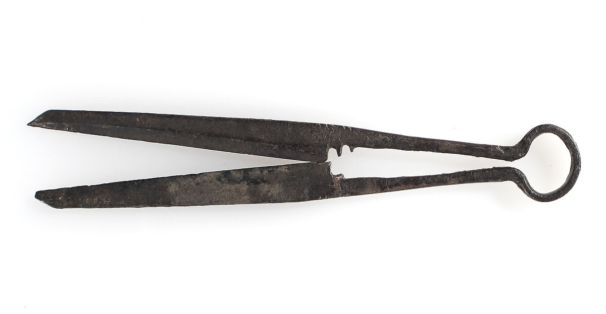 Shears and scissors, common implements in the MIddle Ages, were made in a variety of materials and sizes according to their use. Because of its small size, this pair was probably used for household work, perhaps needlework.