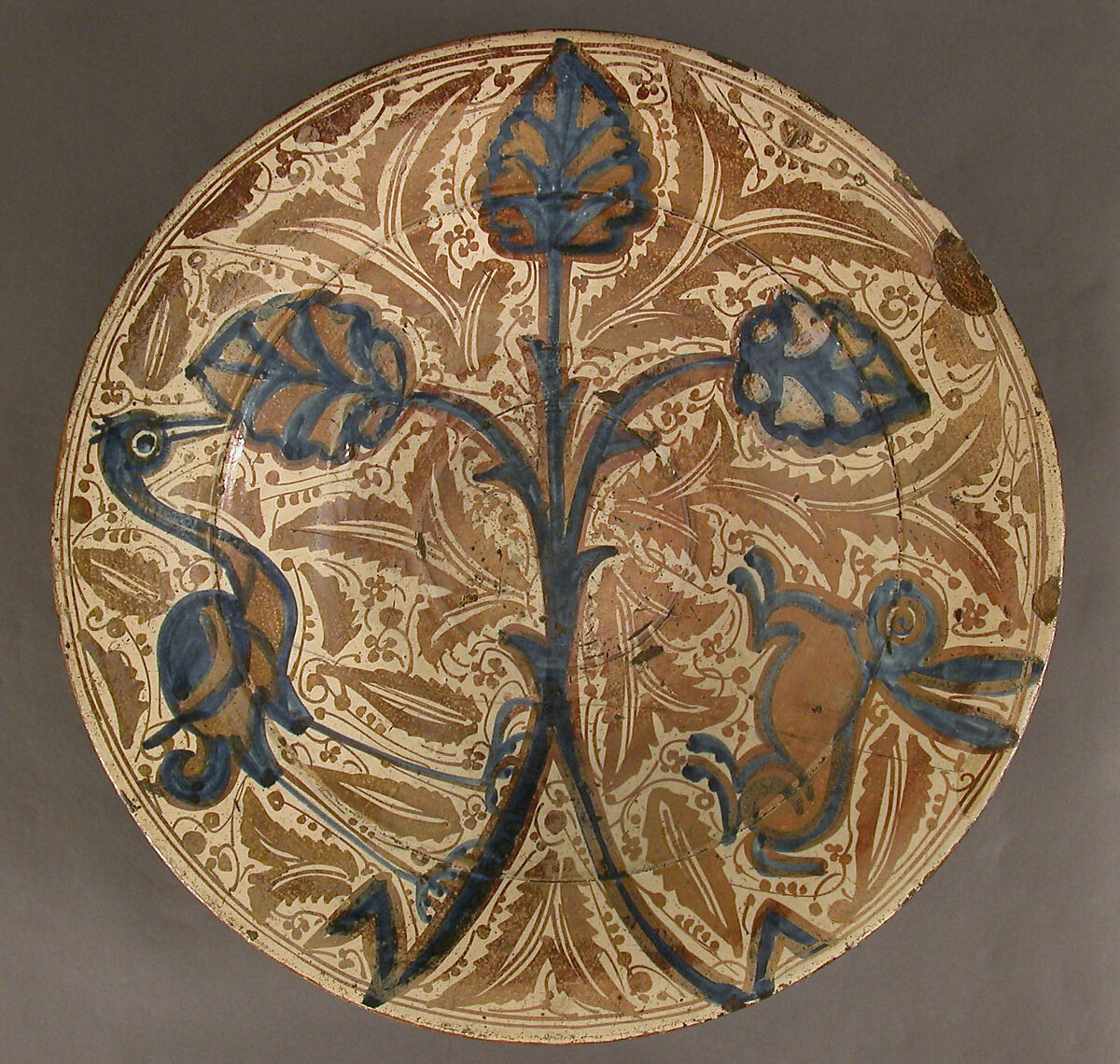 Knowledge of the technique for creating lusterware made its way to the Iberian Peninsula by the twelfth century, when most of the region was still under Islamic rule. By the 1400s, the Iberian center of lusterware production was in Manises, near the city of Valencia. Previously a Muslim taifa, or principality, the Kingdom of Valencia was conquered in the thirteenth century by James I for the Crown of Aragon, and it was here that Christians and Muslim potters worked, sometimes together, for a diverse clientele with a voracious appetite for high quality lustered wares.