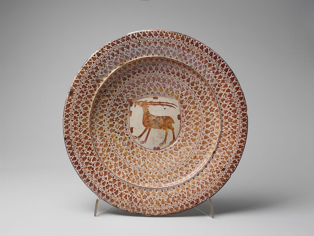 Knowledge of the technique for creating lusterware made its way to the Iberian Peninsula by the twelfth century, when most of the region was still under Islamic rule. By the 1400s, the Iberian center of lusterware production was in Manises, near the city of Valencia. Previously a Muslim taifa, or principality, the Kingdom of Valencia was conquered in the thirteenth century by James I for the Crown of Aragon, and it was here that Christians and Muslim potters worked, sometimes together, for a diverse clientele with a voracious appetite for high quality lustered wares.