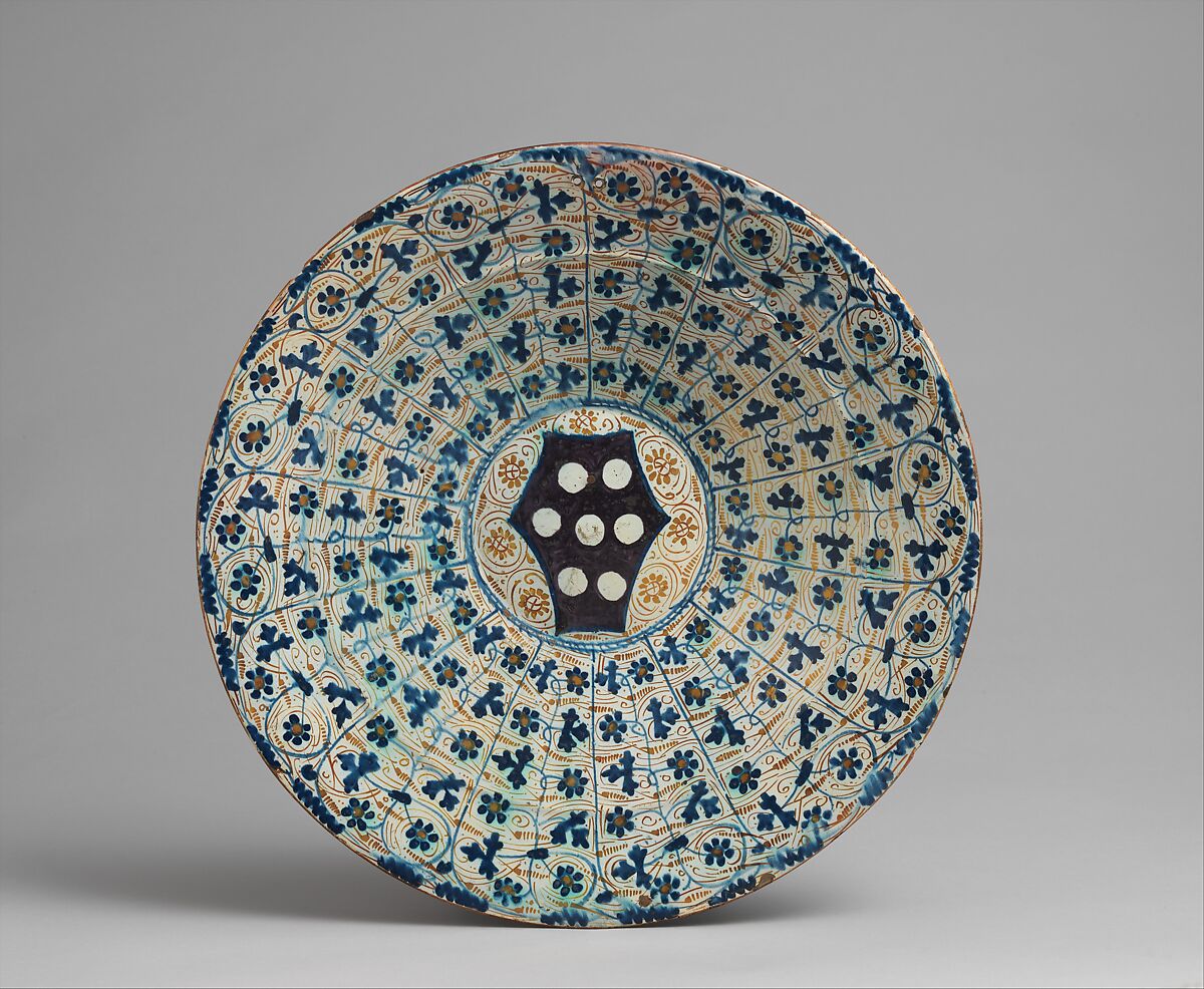 Knowledge of the technique for creating lusterware made its way to the Iberian Peninsula by the twelfth century, when most of the region was still under Islamic rule. By the 1400s, the Iberian center of lusterware production was in Manises, near the city of Valencia. Previously a Muslim taifa, or principality, the Kingdom of Valencia was conquered in the thirteenth century by James I for the Crown of Aragon, and it was here that Christians and Muslim potters worked, sometimes together, for a diverse clientele with a voracious appetite for high quality lustered wares.