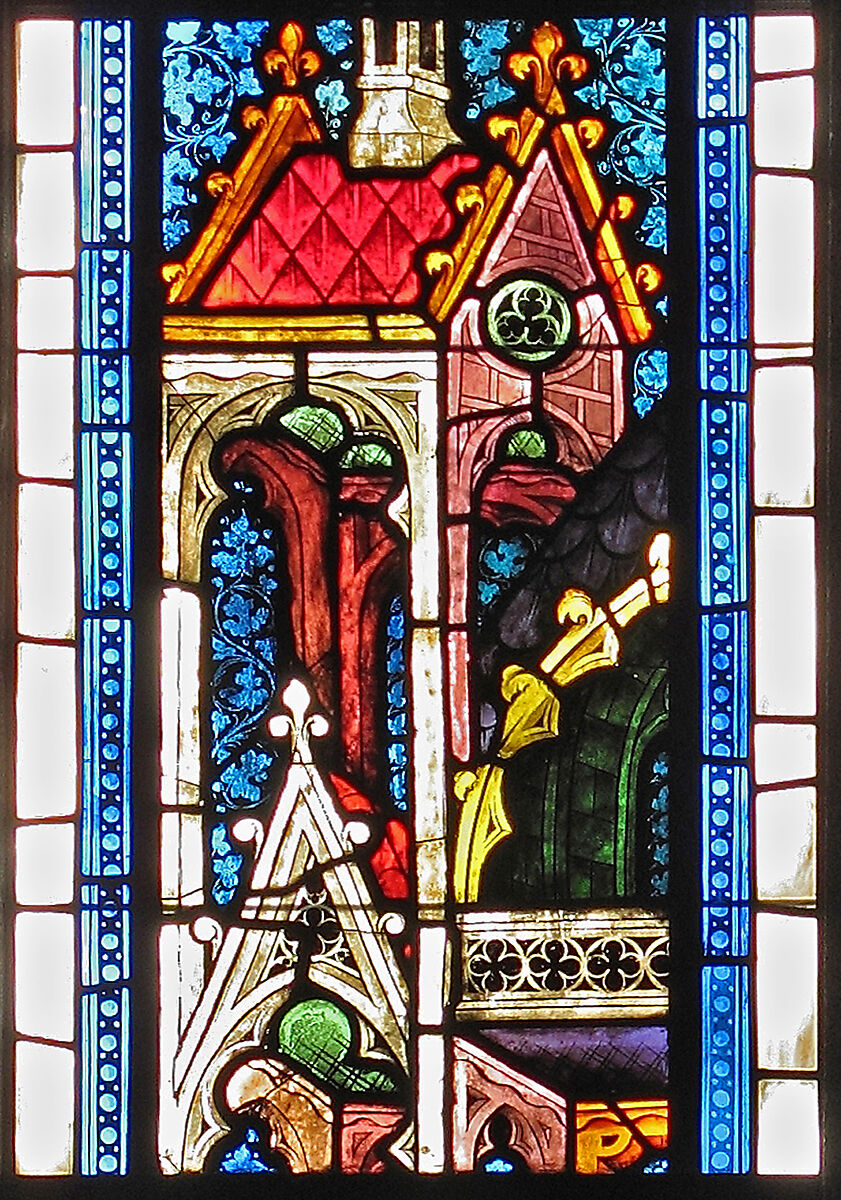 - Medium: Pot-metal and colorless glass, vitreous paint and silver stain