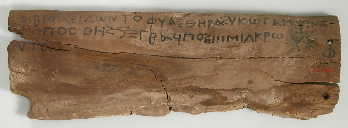 - Medium: Wood with ink inscription