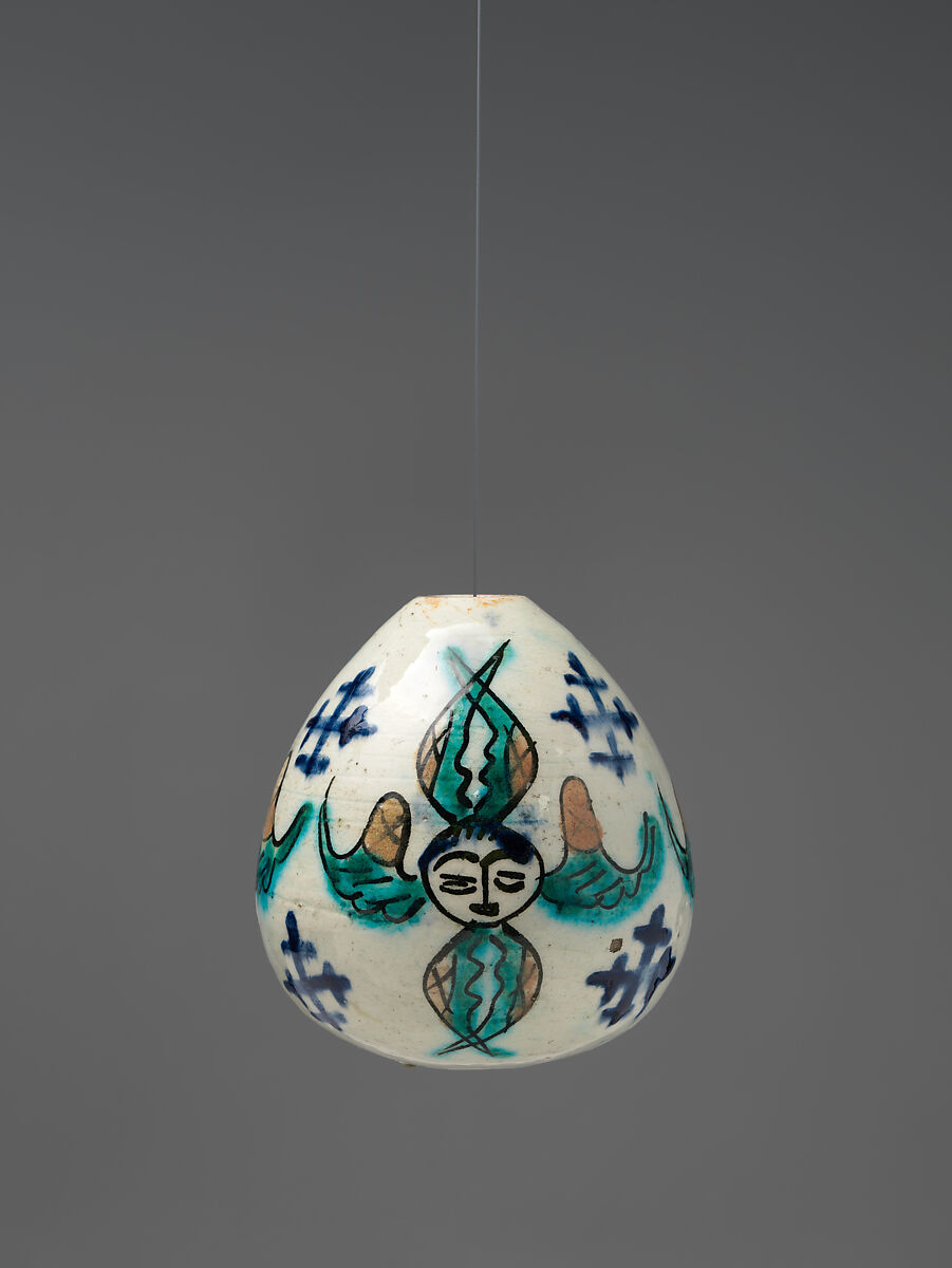 Oval porcelain eggs hung over altars and on lamp cords to prevent rodents and insects from reaching the lamp oil. Winged seraphim heads are joined here with Crusader crosses, reminiscent of the close connections that the Armenians once had with the Latin Crusader states in the eastern Mediterranean.
