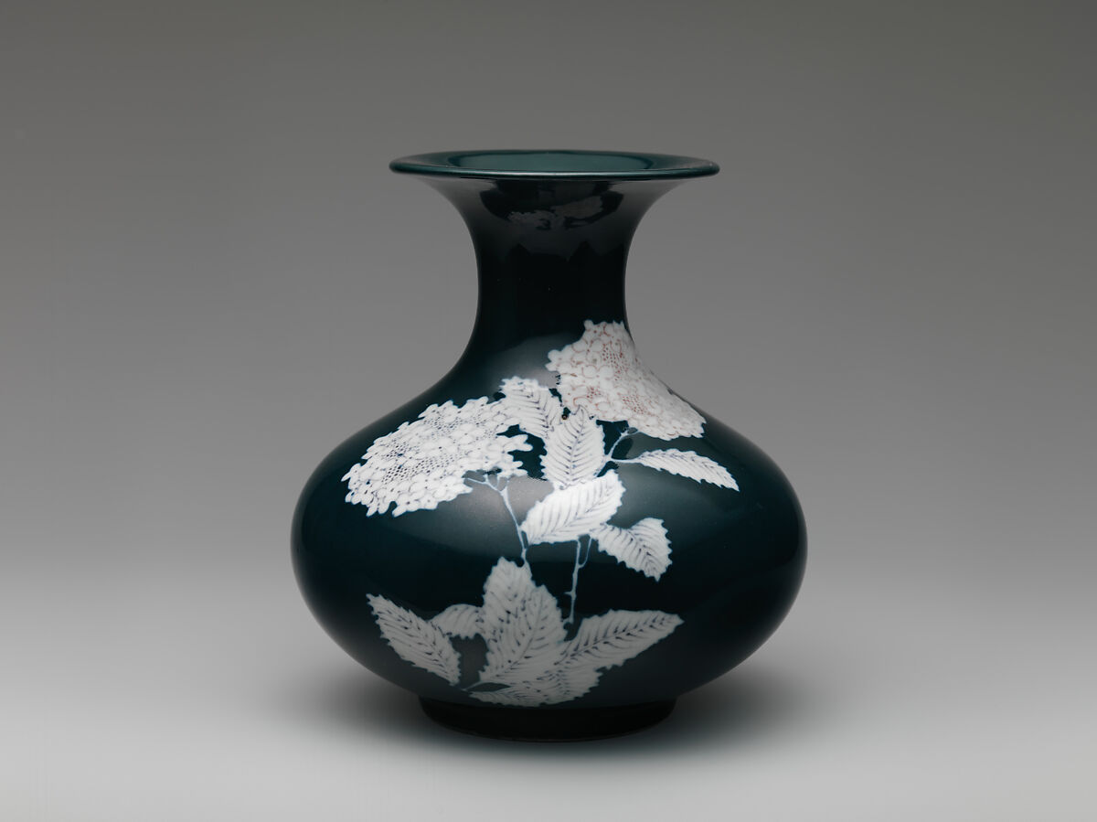 - Medium: Porcelain covered with a dark green glaze and design in white enamel (Kyoto ware)