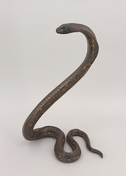 While Dunand is best known for his works in lacquer, his training as a sculptor is evident in the skillful modeling of these snakes, while the confident handling of the metal demonstrates his abilities as a craftsman. Each snake is cast in bronze; the scales were chased and highlighted with gilding afterward.