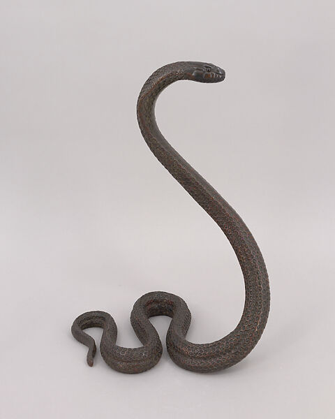 While Dunand is best known for his works in lacquer, his training as a sculptor is evident in the skillful modeling of these snakes, while the confident handling of the metal demonstrates his abilities as a craftsman. Each snake is cast in bronze; the scales were chased and highlighted with gilding afterward.