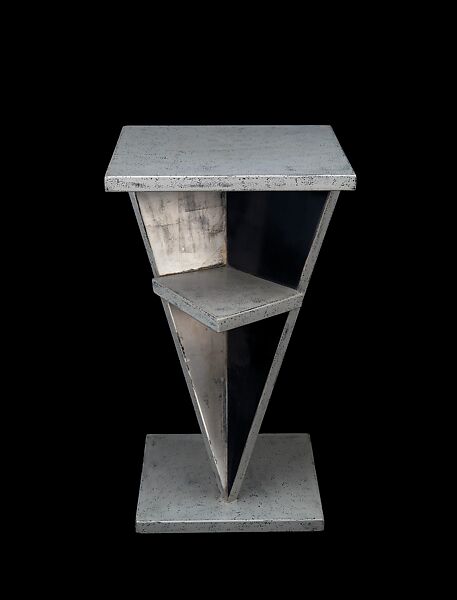 Although the great majority of Dunand's clients were French, one of his most important design projects was realized in America: a penthouse apartment in San Francisco designed for Templeton Crocker (1884-1948), the millionaire grandson of the founder of the Union Pacific Railroad Company. Completed in 1928, the apartment contained a master bedroom, dining room, and breakfast room by Dunand; other rooms were designed by Jean-Michel Frank, Pierre Legrain, and Madame Lipska. The apartment was dismantled and sold in 1959. The "sponged" surface of the table is characteristic of lacque arraché, a technique Dunard favored, wherein a final coat of lacquer is applied over a roughened layer—in this case, metallic gray over black. By polishing the entire surface, the raised peaks of the black lacquer are revealed, creating a mottled yet smooth effect.