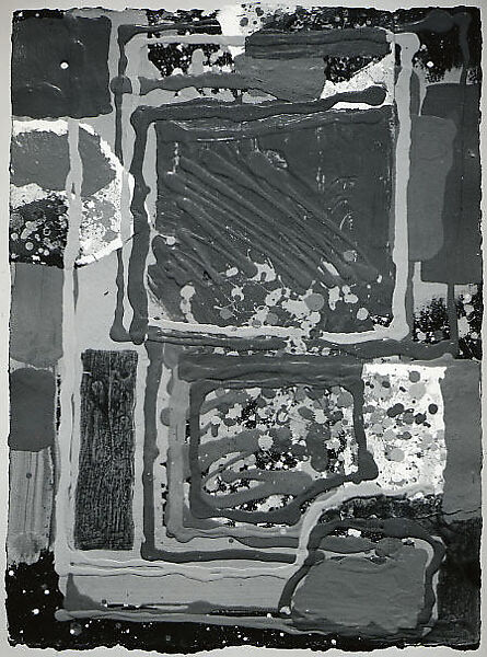 - Medium: Acrylic, enamel, and cut and stapled paper on paper