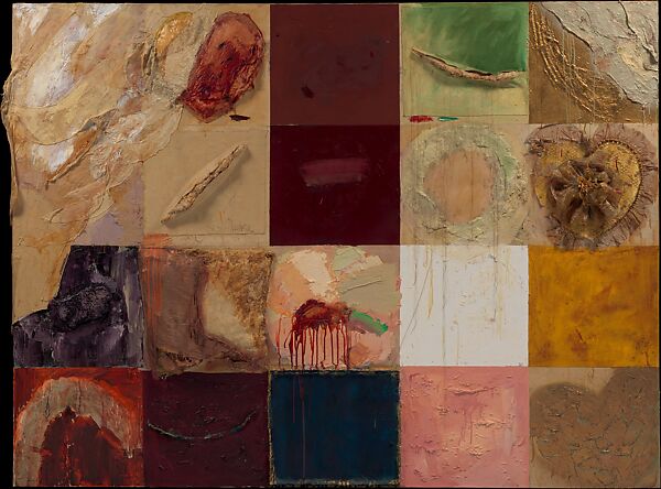 - Medium:Oil, acrylic, paper, fabric, cheesecloth, papier maché, mattress batting, and thread on canvas