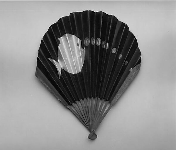 Elegantly designed but inexpensive to produce (and probably quite welcome in the days before air-conditioning), chic paper fans, styled to look like fashion illustrations, were widely used as advertising tools. This fan promotes Maison Prunier, a fashionable seafood restaurant that opened in Paris in 1925.
