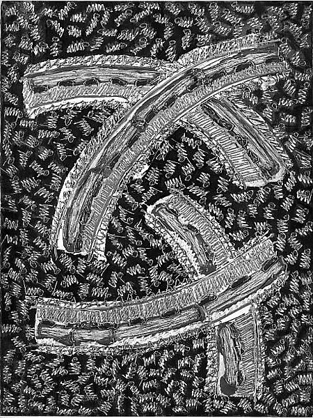 - Medium: Acrylic and wax crayon on paper